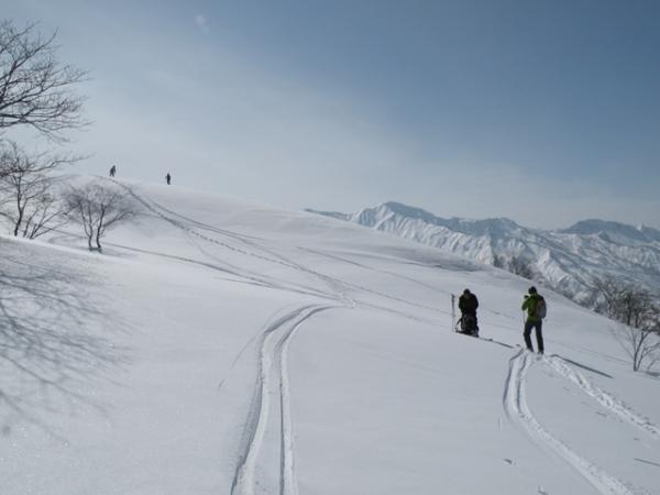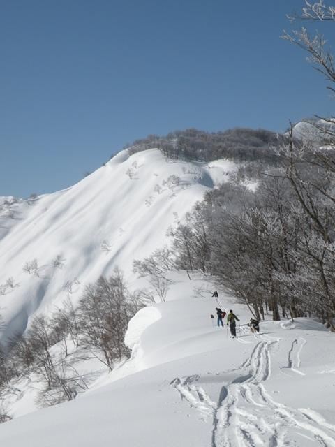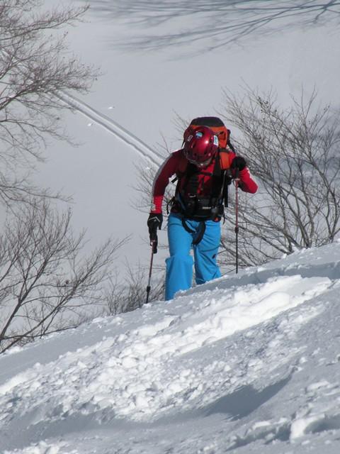 途中まで滑り下りて、再度登りかえし放山から再滑走。