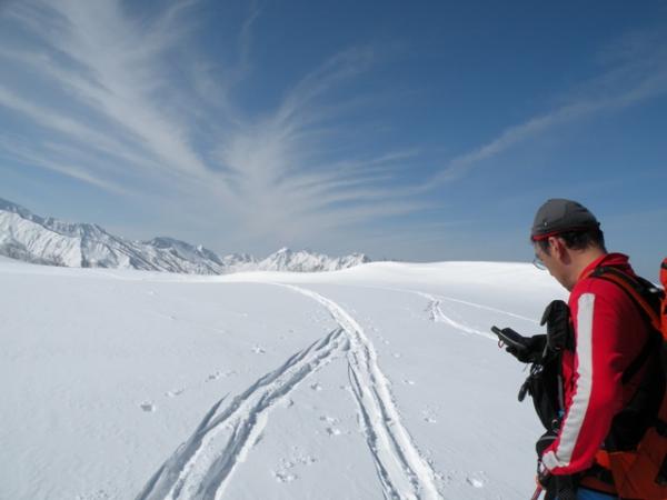 - 金沢6:02-滑川IC7:02(富山チームと合流)-能生IC-シャルマン火打スキー場8:20(準備他)9:10-スキー場上部9:20(準備)9:30-放山10:40-1つ先のピーク10:50(昼食と休憩)12:30-途中まで滑走13:00-登りかえして放山13:30(休憩)13:55-スキー場上部14:22-スキー場下部14:30