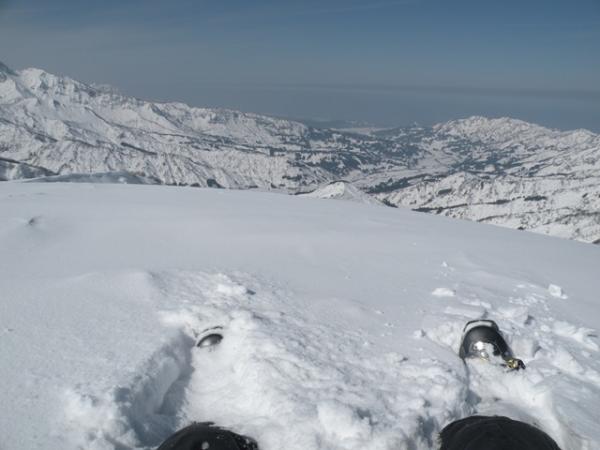 - 晴れ無風。シャルマンスキー場上部は、570cmも積雪がありました。(下部は、499cm)スキー場上部から放山(さらに1つ先へのピーク)へは、ある程度雪が締まっていてスキーはもちろん、スノーシューでも問題なく登れました。