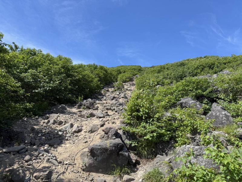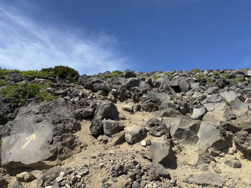 その後八合目を過ぎた辺りからザレザレの岩場です。