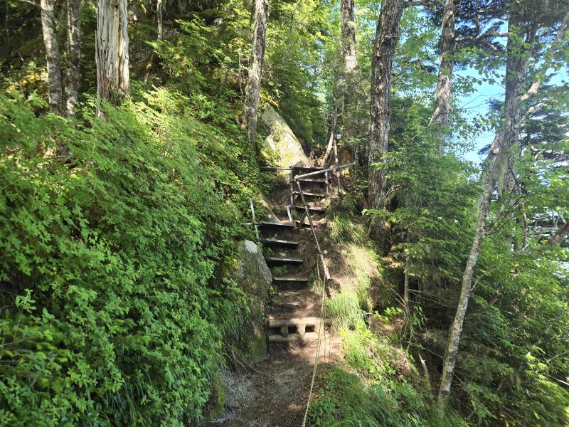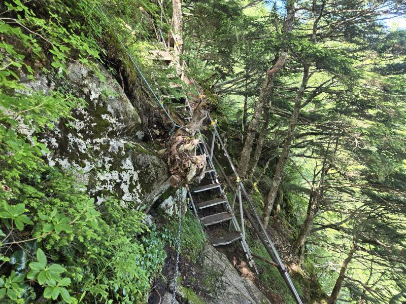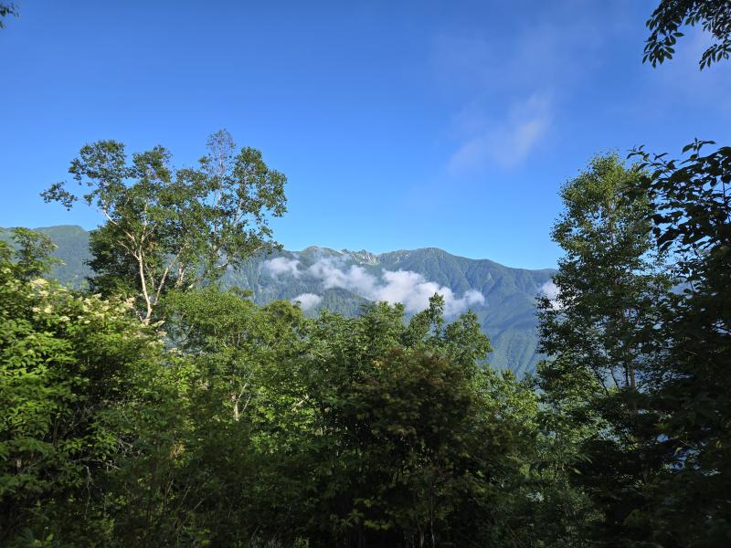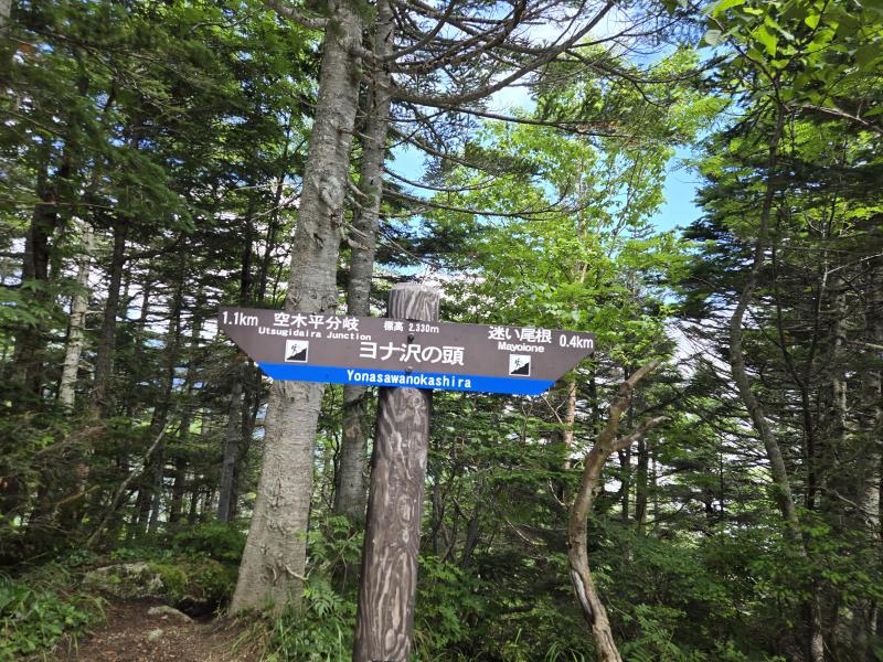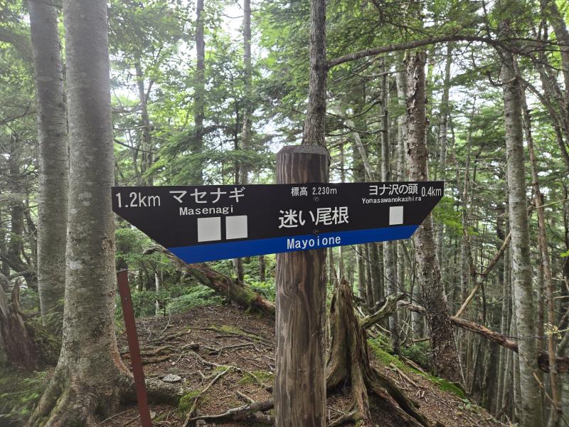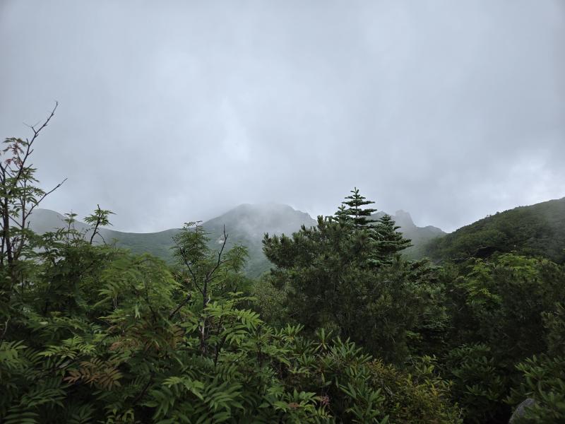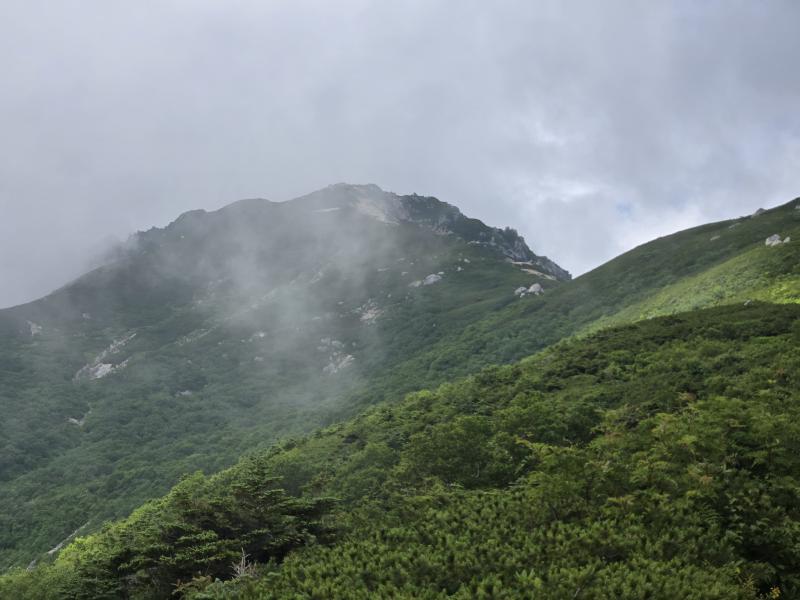 往復17㎞,コースタイム12時間と体力を要する山ですが、樹林帯はゆるやかな登りで、すきま風涼しいブナ林歩きができました。