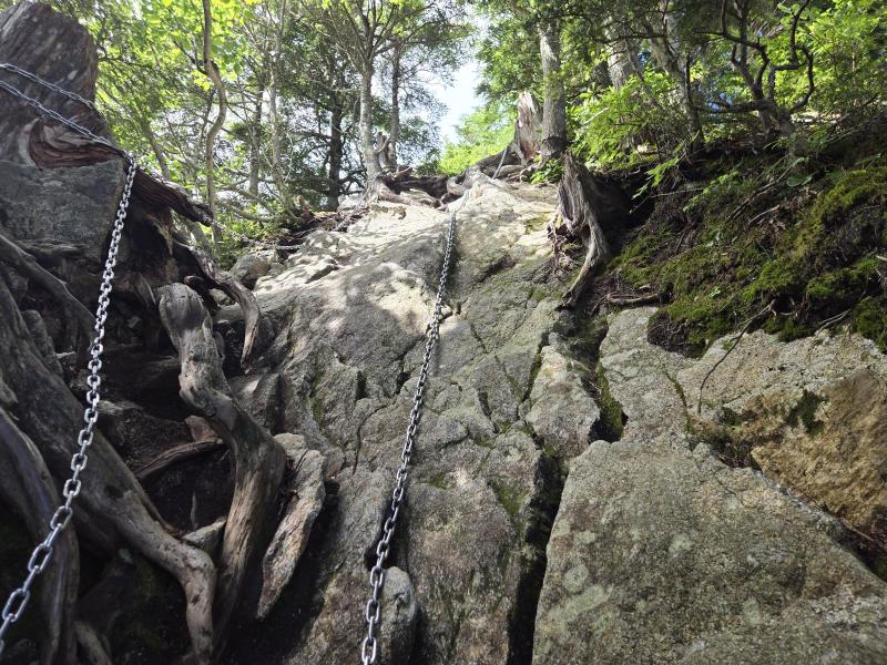 - 樹林帯内は全体にゆるやかな登り。迷い尾根にある大地獄、小地獄は鎖場区間で注意。
