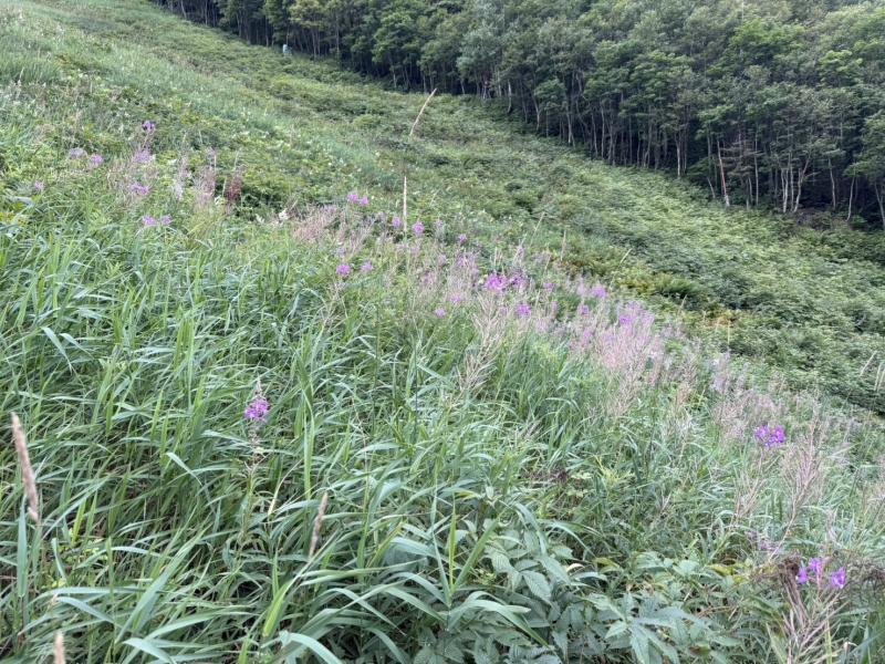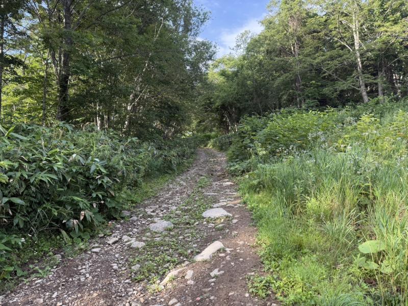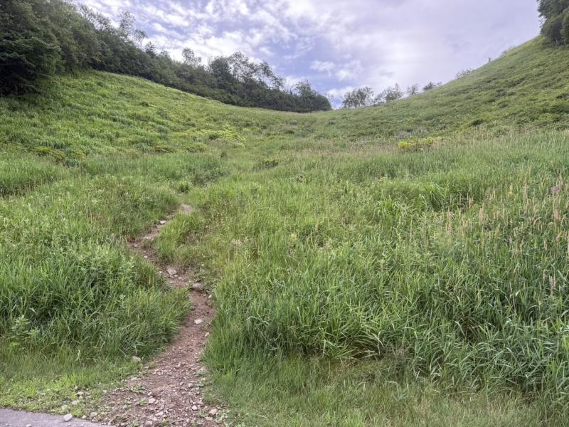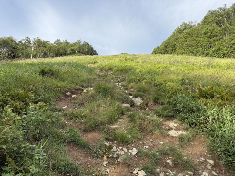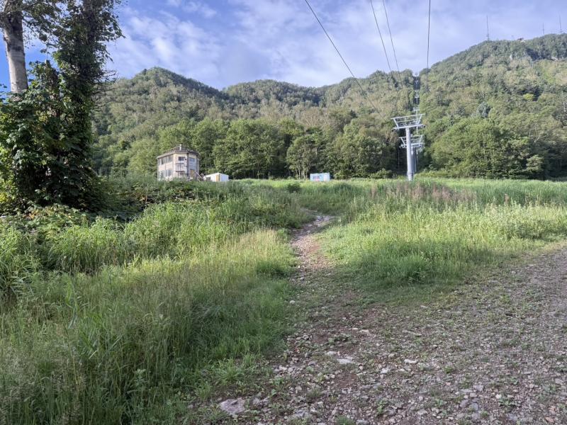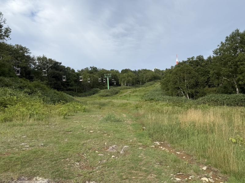 スキー場のピーク手前でやや急登がありますが短距離です。