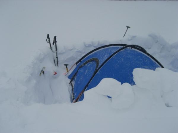 小屋横のトイレまでの道もすぐに消えてしまったり、テントの周りの塀以上の高さまで雪が積もっていたり、本当に雪に悩まされました。