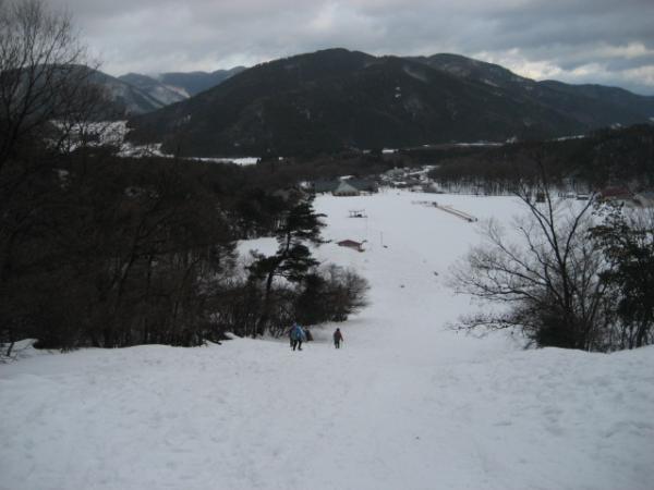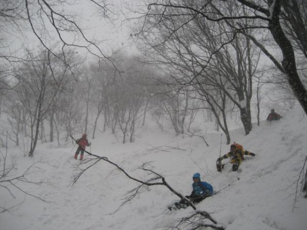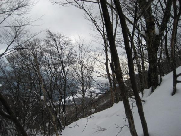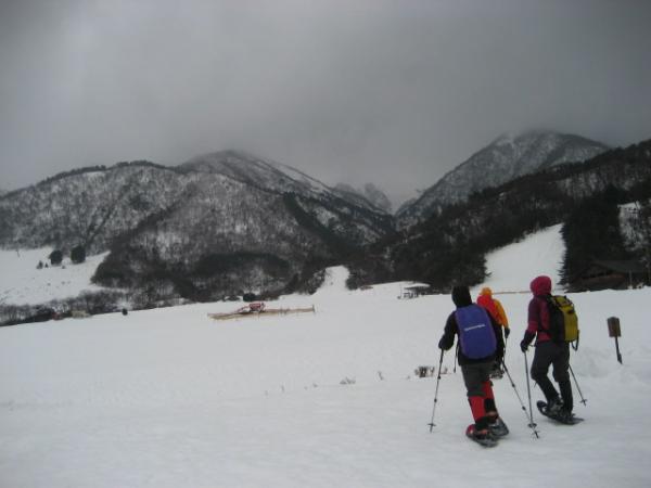傾斜がきついところではスノーシューのヒールリフターを使うと楽です。