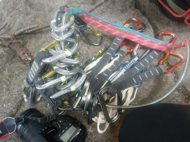 60Mロープも入ってます。クイックドロー15本、クライミングシューズ、その他装備、