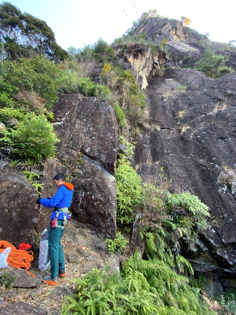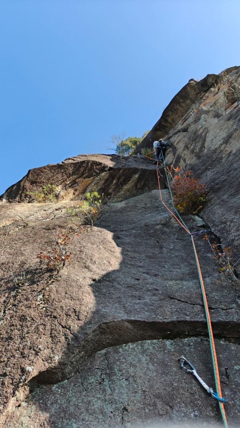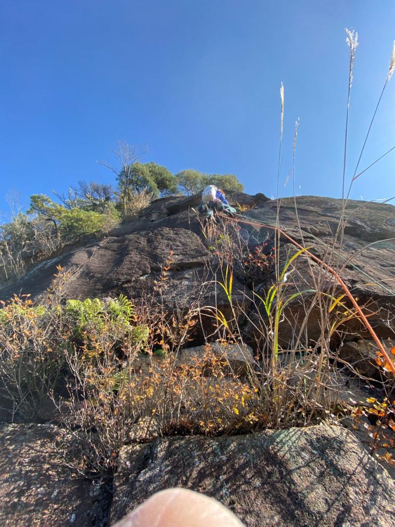 終了点は、ブッシュまで入り込んで立ち木にした方が次のピッチが登りやすいです。