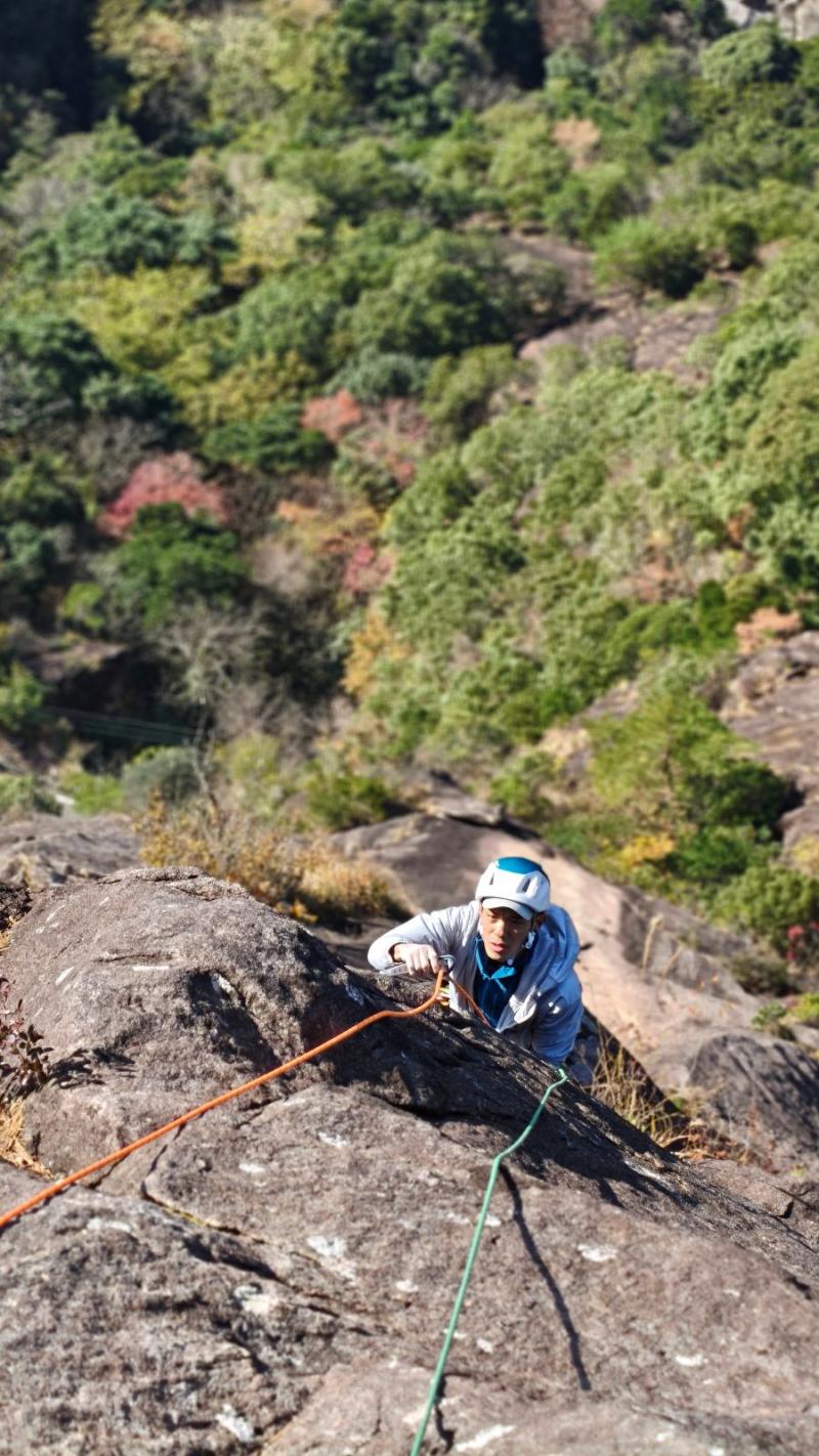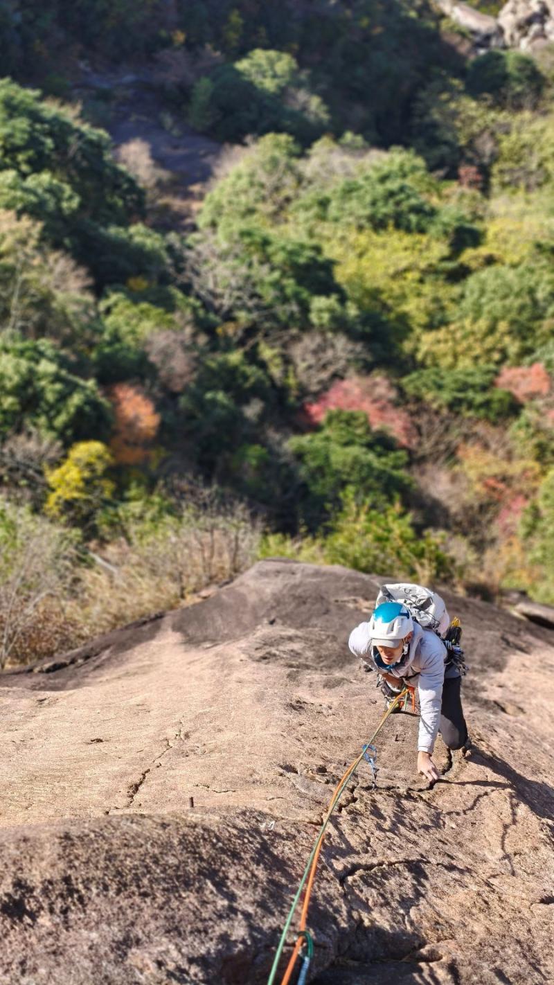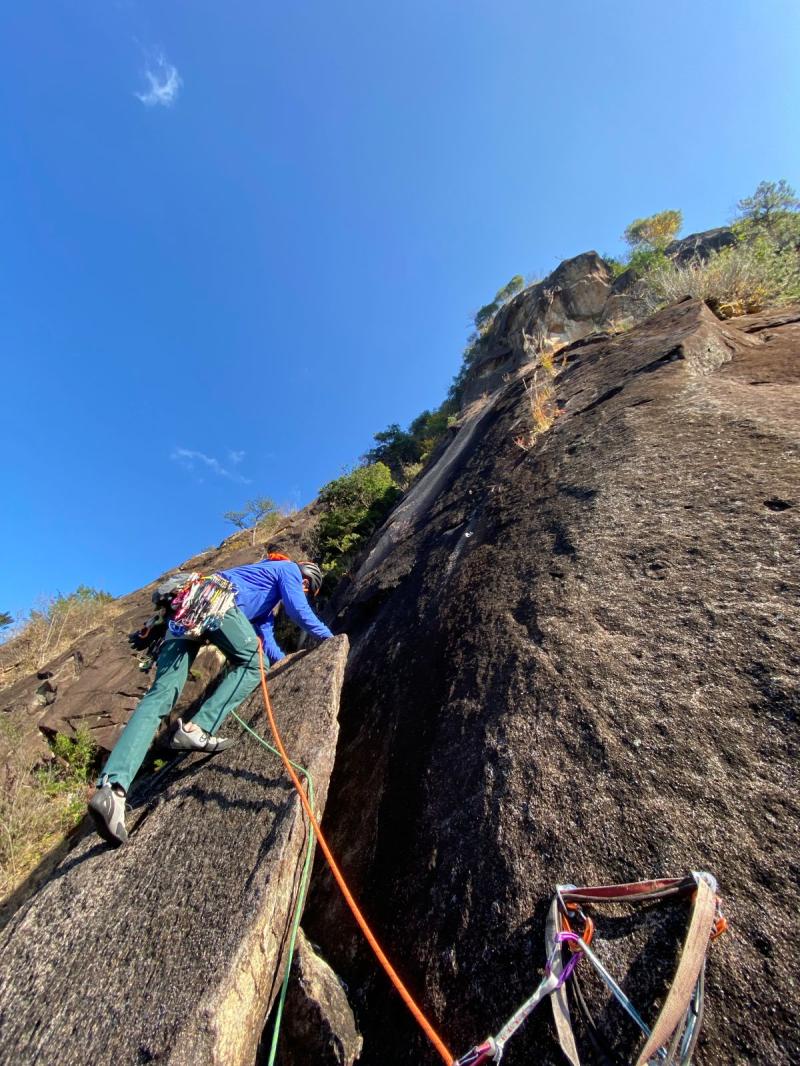 パートナーは最初のボルトだけ使用して後は全てプロテクションをカムで取って登りました。