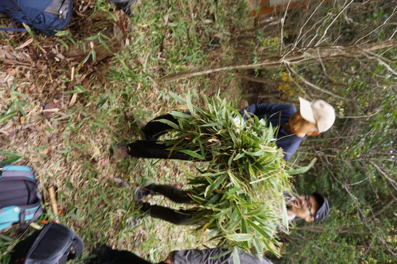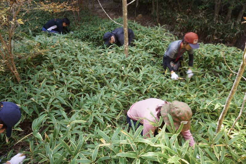 皆さん、登山では疲れてないご様子?でしたので、これからメインイベントである『植樹地の笹(ミヤコザサ)刈り』に取り掛かります。