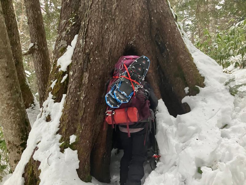 一日目 前日のレポート見て、スノーシュー用意 稜線手前はノートレース