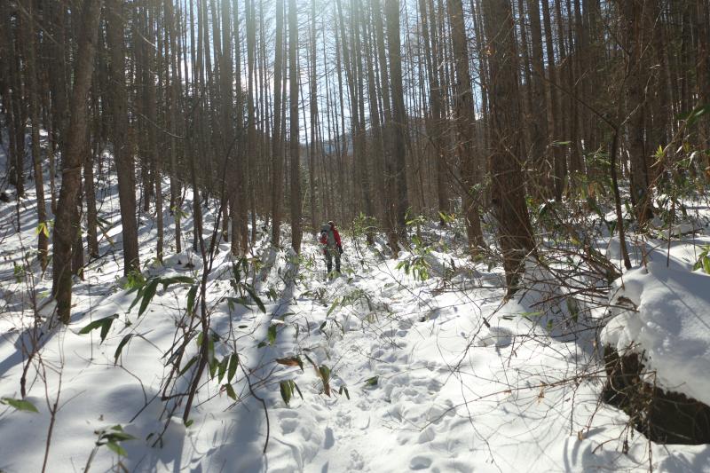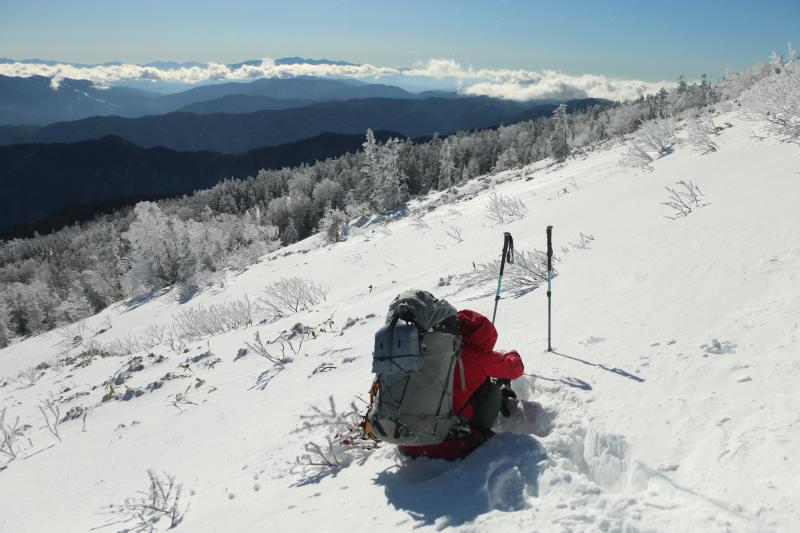 途中までは週末の方のトレースあり、荷物が重いだけで順調でしたが