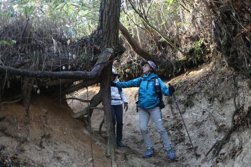 順調に下り、各所で休憩、下りの歩き方、ストックの使い方をレクチャーしながら