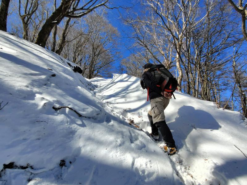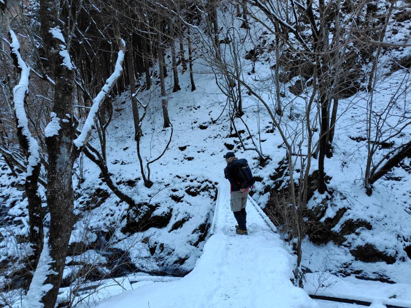 細倉橋からアイゼンを装着しました。