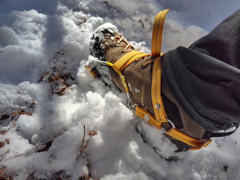 チェーンスパイクで問題なく歩けるよう