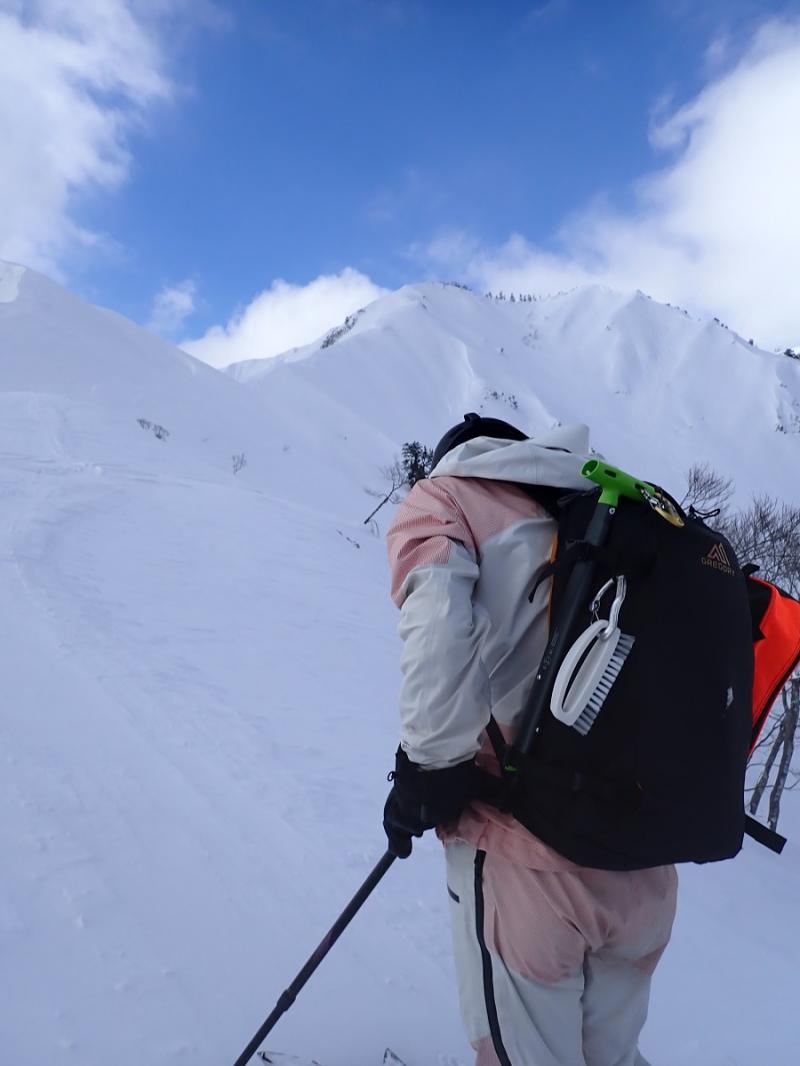 YD君は、初のスプリットボードで登りに苦戦しながらもしっかりと、登ってきました。流石、山慣れしてます。