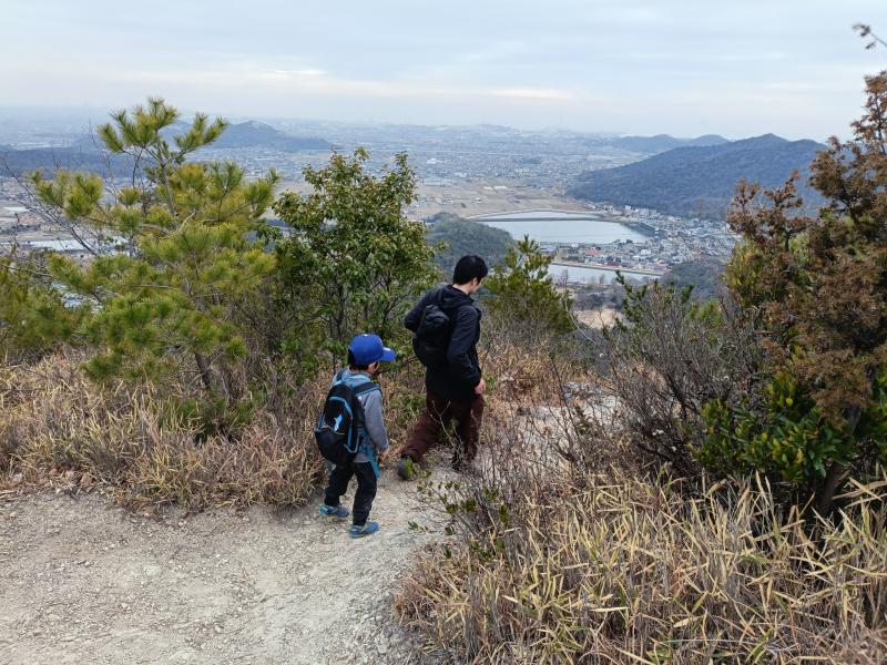 下山を長尾コースにしてまた下道を歩くか、市ノ池公園に下りてすぐ遊ぶか、子供にちょっと急なくだり道になるかもと伝えましたが、頑張るとのこと!