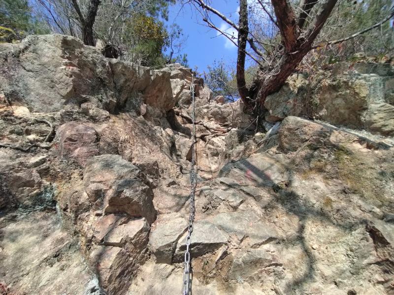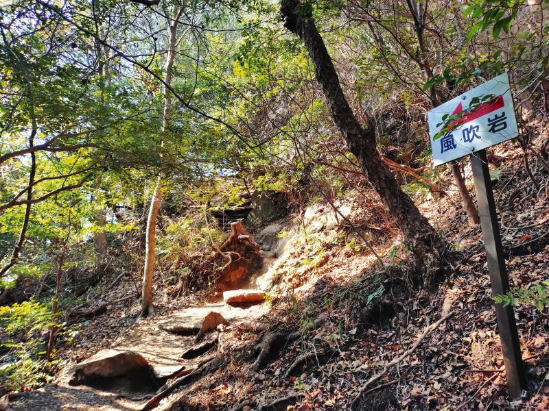 阪急・芦屋川駅を出発し住宅街を歩きながら芦屋川を横目に高座ノ滝へ。高座ノ滝から風吹岩(437m)まで登山道を歩くこと約45分。途中、岩のくぼみに手を添えて登ったり、鎖を使って登ったりする場所が見受けられます。