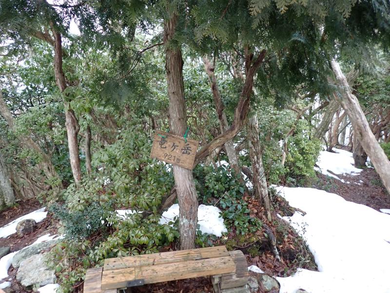 激登を終えると、また積雪が出て来て竜ヶ岳の山頂に到着。気温は0度でしたが、風が強く非常に冷たい。帰路は愛宕山の山頂を経由して、月輪寺ルートで下山しました。
