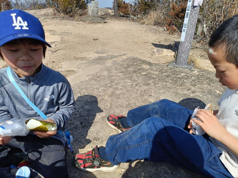 山頂には登山者の方がちらほら休憩されていて、さっそくこちらもおにぎりタイム。