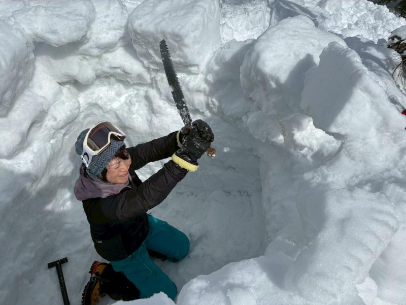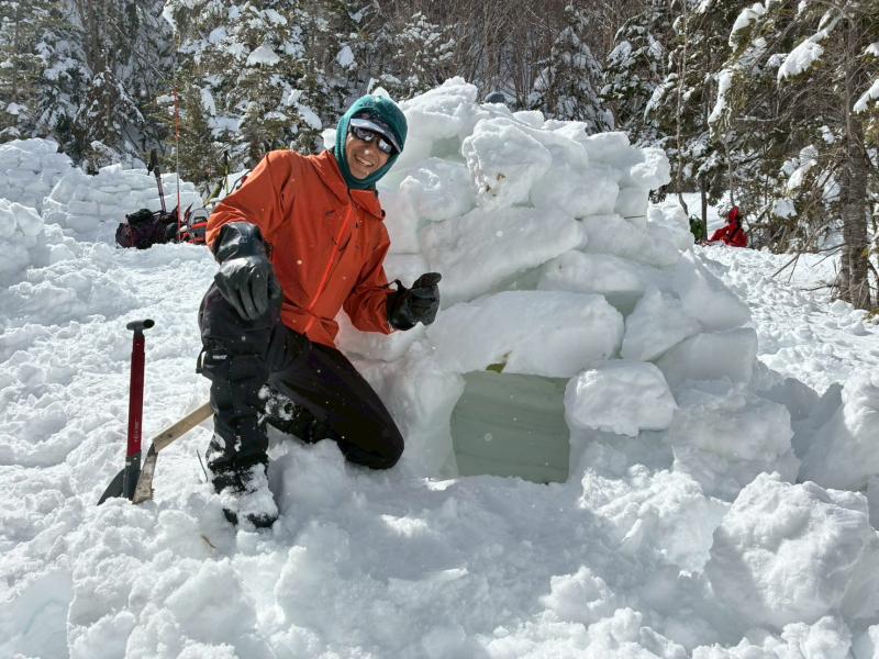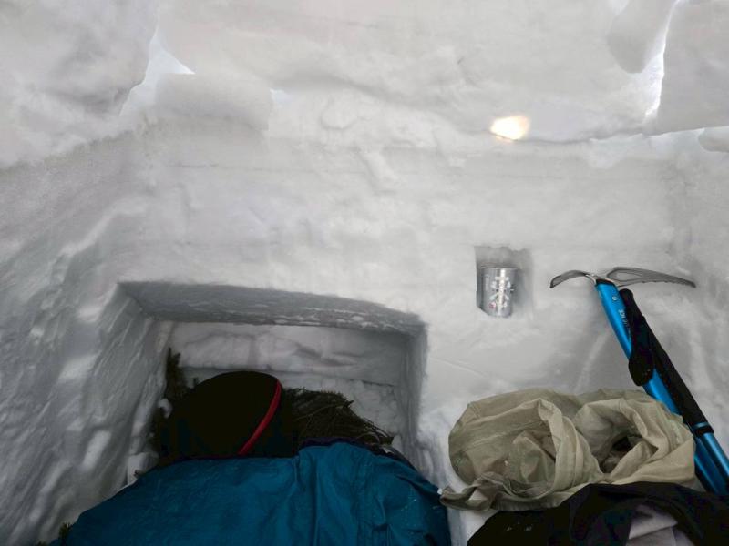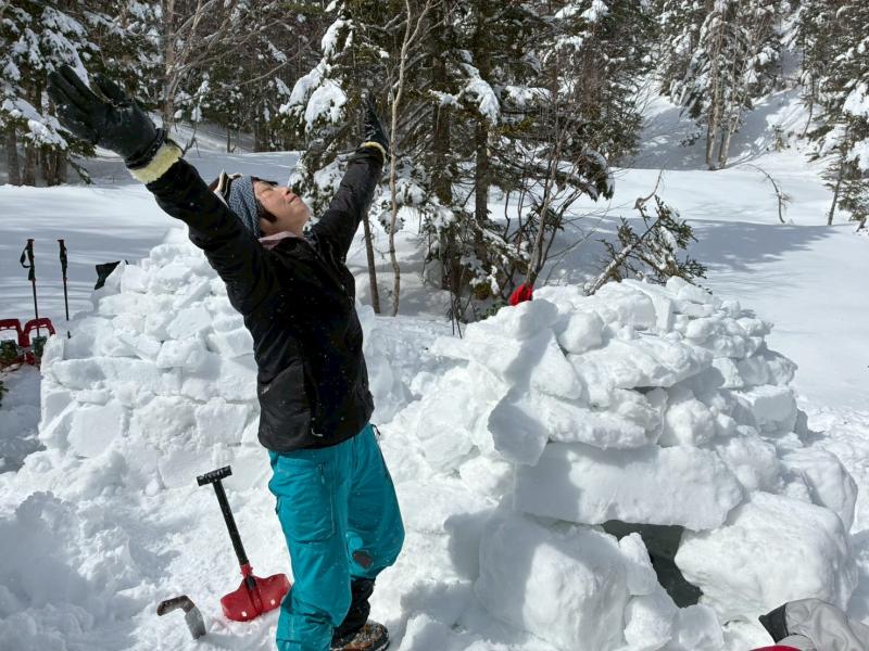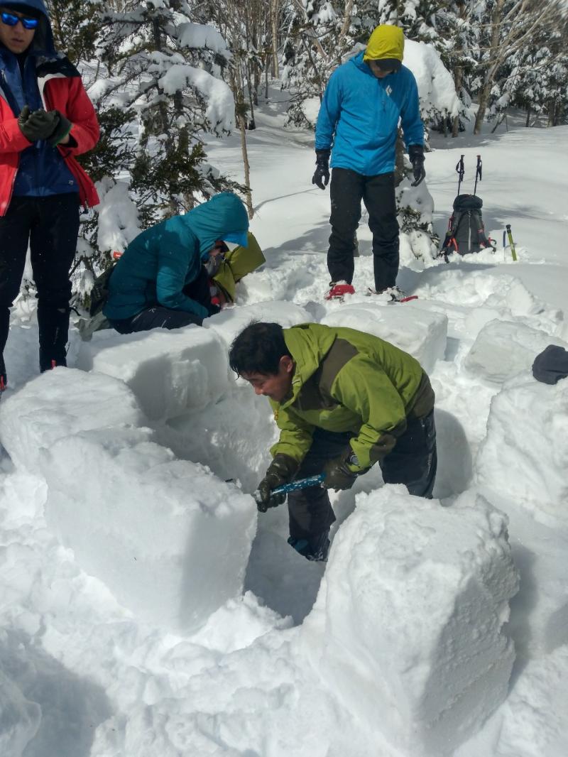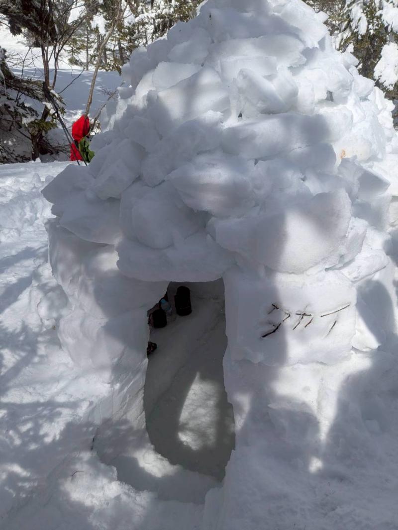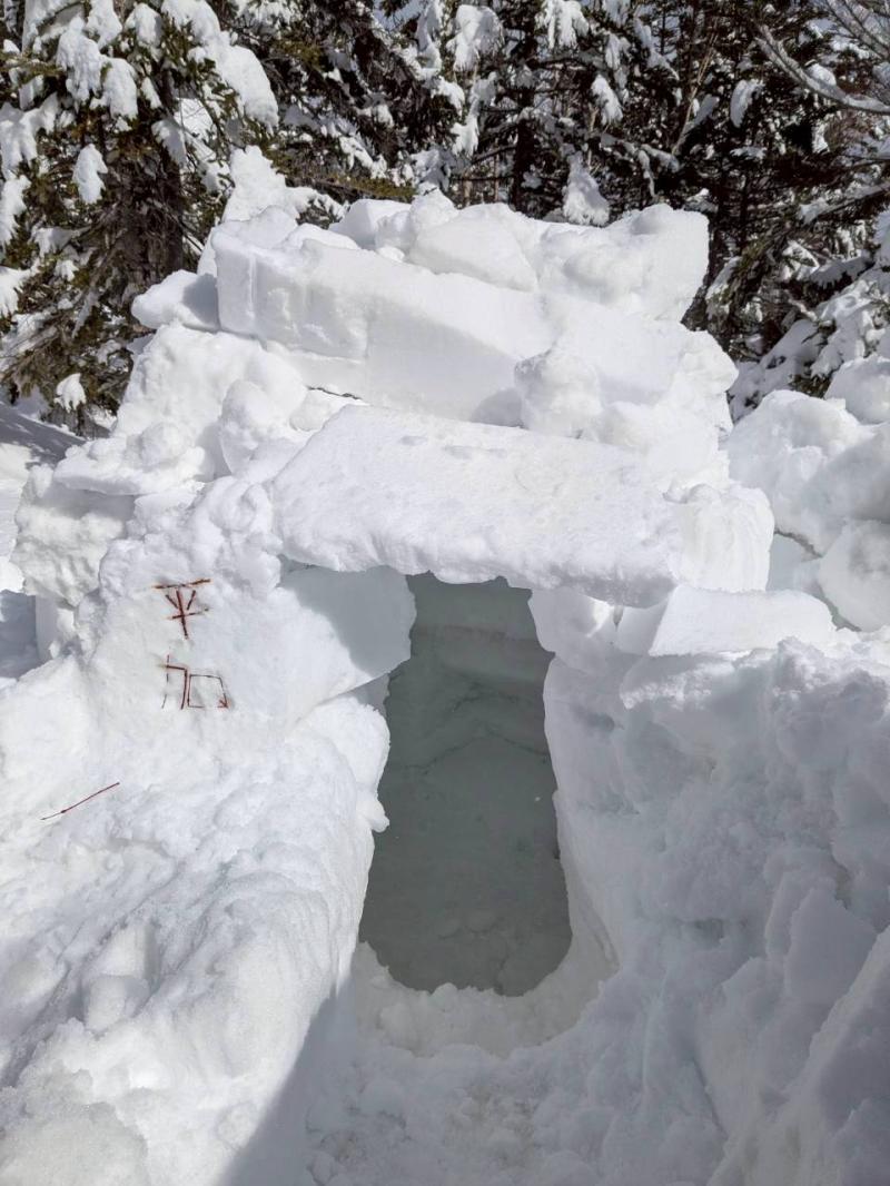雪上での家づくりです。ビバークで使用できます。積雪30CMほどでも作れるそうです。