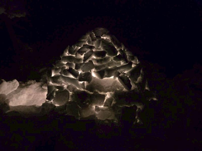 雪で柱(ブロック)を作り、組み立て、家になる行程です。
