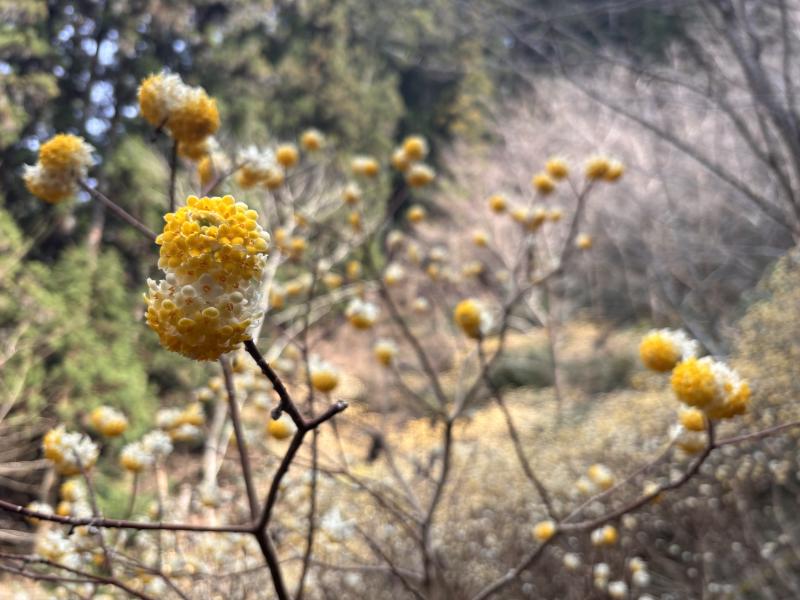 登山口に入るまでに沢沿いのミツマタを見に行きました。