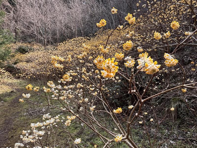 のぼりは沢沿いにしかミツマタは咲いていませんが、