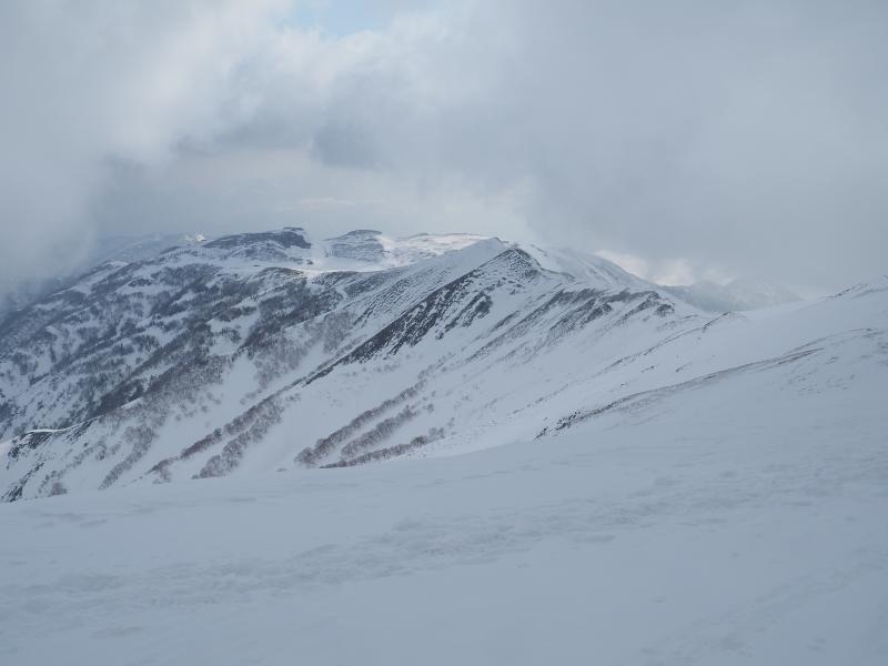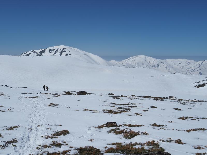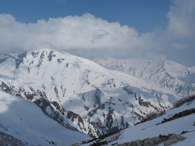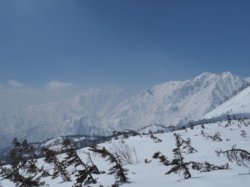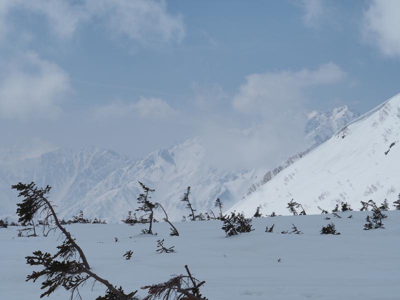 1日目に白馬岳を目指すべきだったか〜と思いながら下山していたら、天狗原を過ぎた辺りで後立山の稜線が見えているじゃないですか。もうちょっと粘るべきだったようですね。。。下りは雪ザクザクで踏み抜き地獄(特に天狗原下)で疲れます。