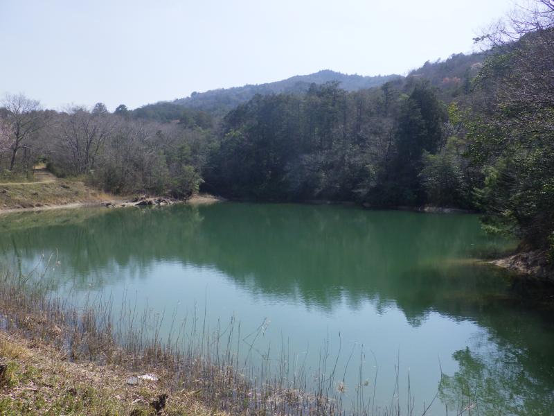④大谷池からは行く先に鏡山が見えます
