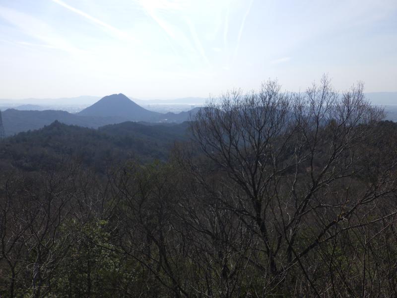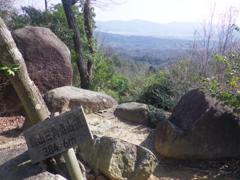 ここから山頂はすぐ上で山頂は展望がなく、山頂手前の展望台と先に進んだ三角点、涼み岩からは展望があり、すぐわかる三上山が見えました。