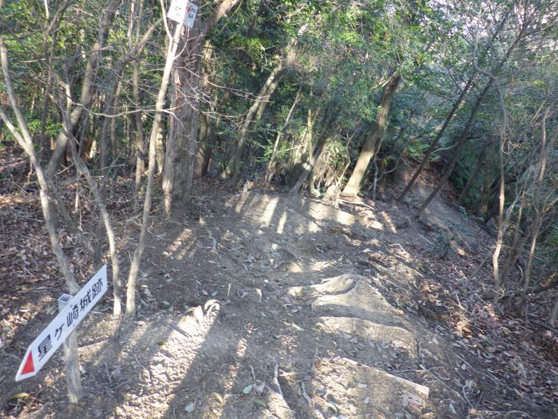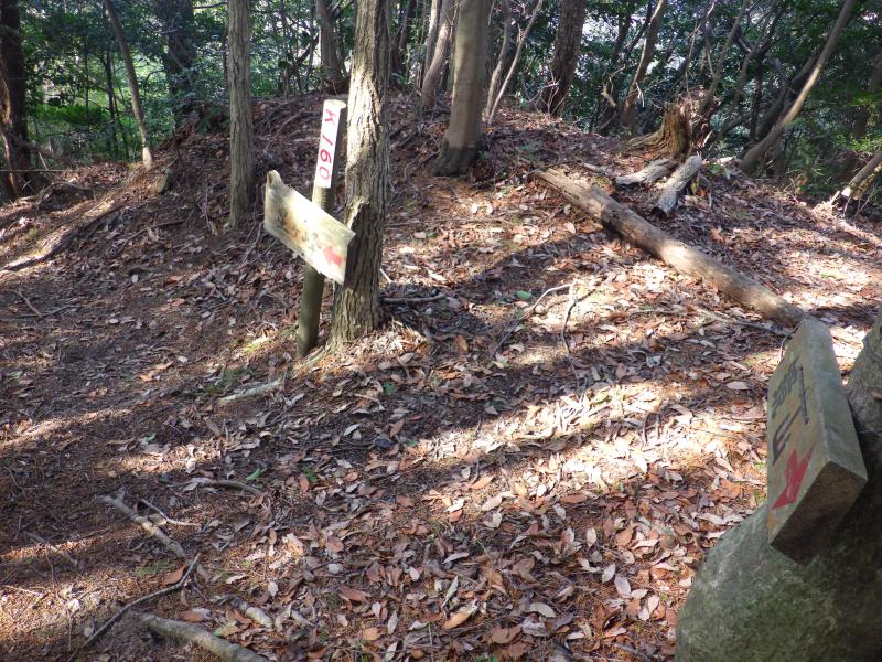 ⑩竜王山から右側の道へ進むと、三角点方面経由で星ヶ埼城方面へ続きます