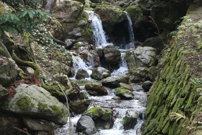沢沿いの道は