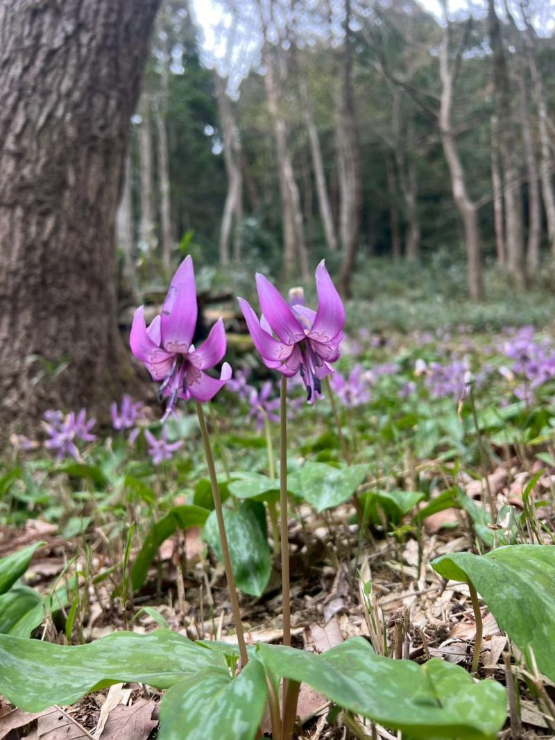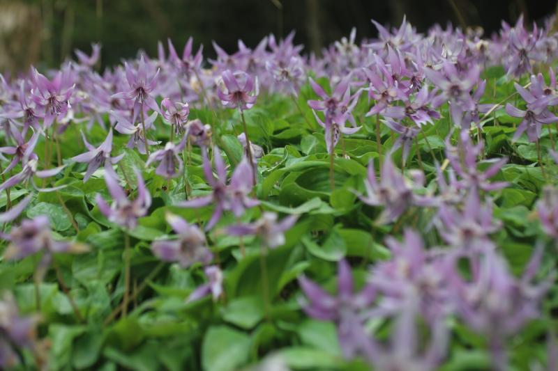 ニリンソウの群生、 カタクリは一面紫色の絨毯でした。