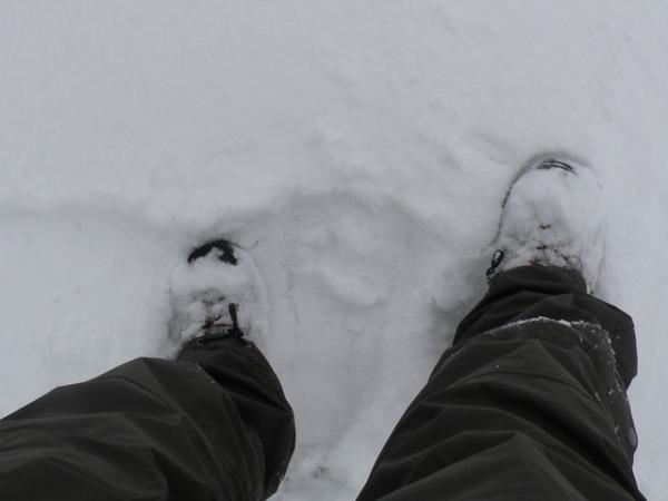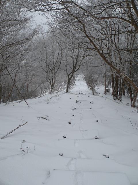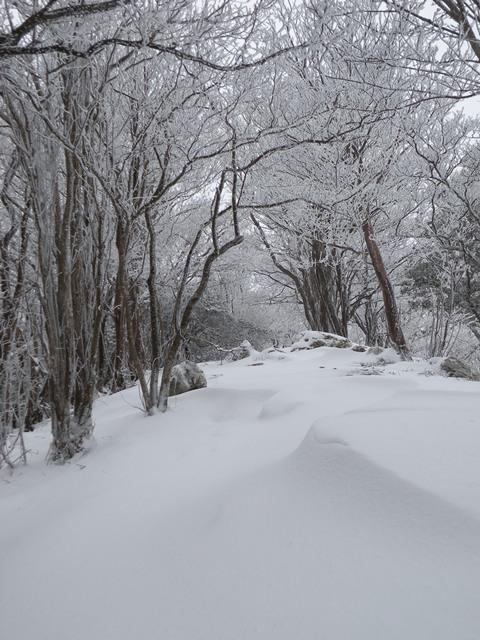 途中の登山道は、5cmから30cmの積雪。