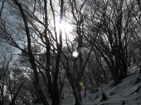 登りは、またまた写真を撮りまくって時間が、かかってしまいました。ちゃんと登るともっと短時間で登れると思われます。つい雪の景色に立ち止って見とれてしまいました。(^^)