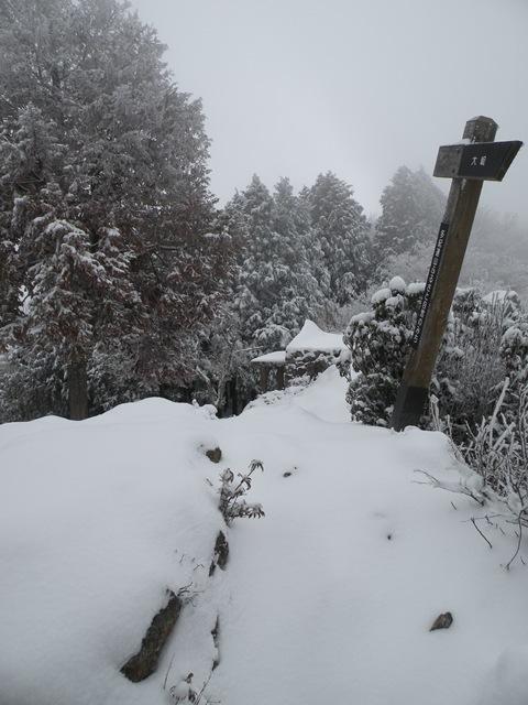 山頂付近は10cmから30cmの積雪。風で吹きだまっていたり、吹き飛ばされていたり。