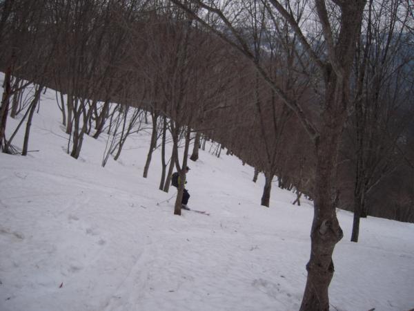 樹林帯の雪はすっかり少なくなり、滑走には「不適」なコンディションでした。