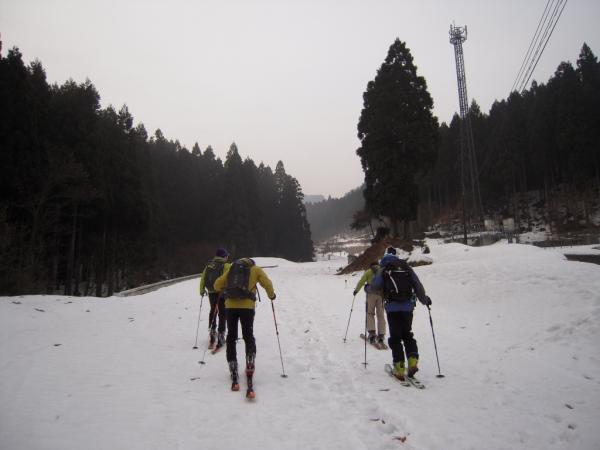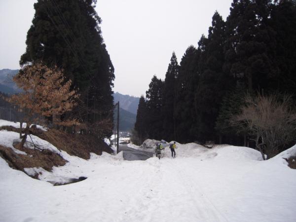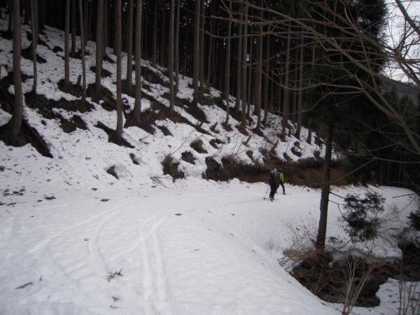 除雪の進んだ林道まで、車で入れます、そこから林道沿いに進み、林道上部よりショートカット