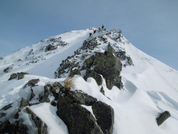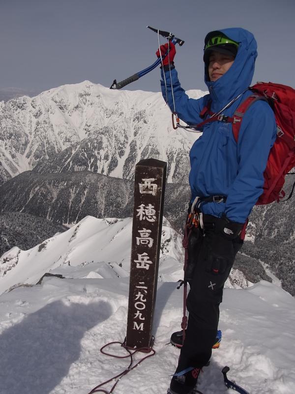 天気予報どおり、午前中は快晴。氷の露出した部分も少なく、風も弱い最高の状態でした。私は冬の西穂は3回目でしたが、今までで一番のコンディションだったと思います。
