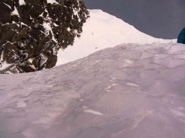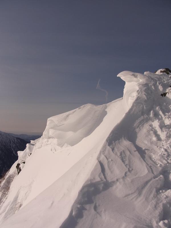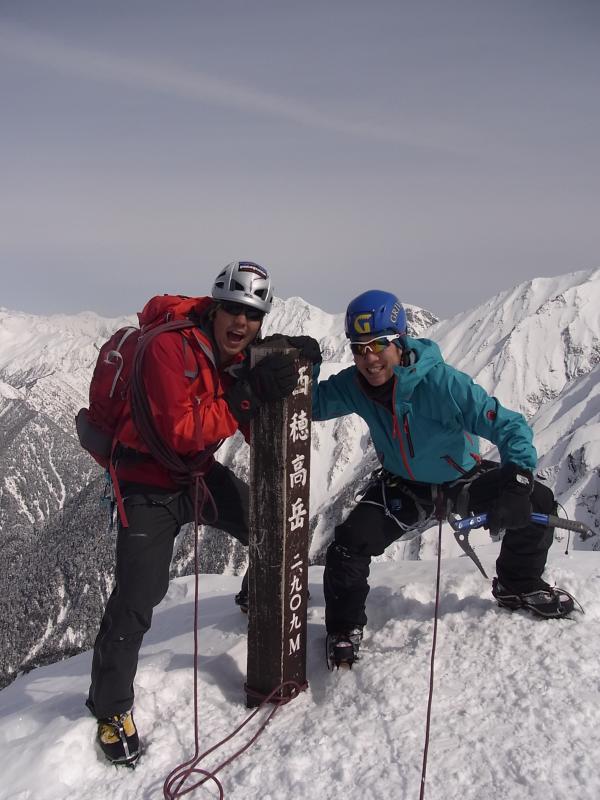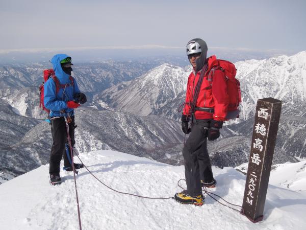 - 山荘まではトレースがついており、スノーシューはいりませんでした。アイゼンがあれば楽に行けます。山荘から西穂頂上までは、部分的に完全な氷が張ってましたが、クラストした雪がほとんどでアイゼンの効きが良かったです。気温は-6℃、風も弱く最高のコンディションだったと言っていいでしょう。
