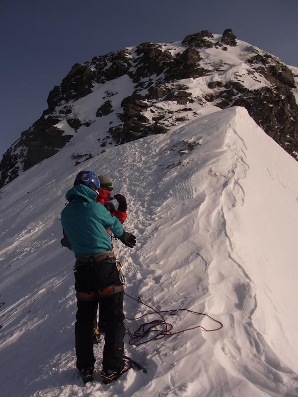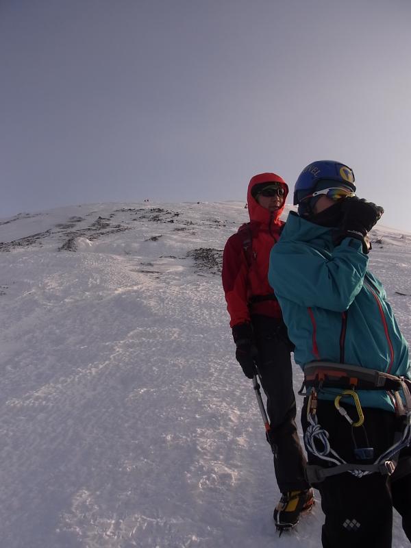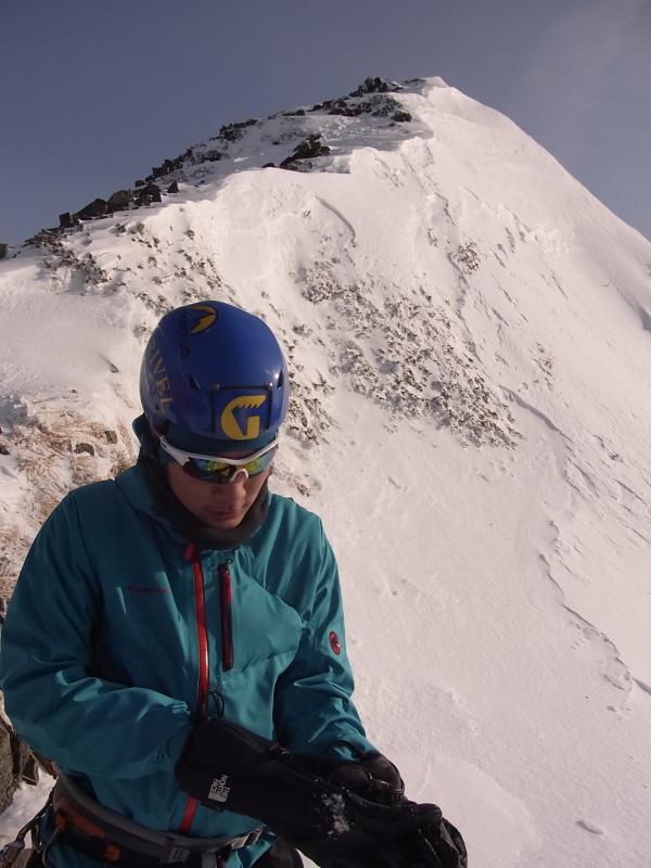 初冬山のメンバーだけ確保しながらの行動でしたが、そんな場面に出くわしたため、頂上直下の雪壁は私も確保してもらいながら登下降しました。私たちが無事に行動できたのは、ひとえに確保技術のしっかりしたメンバーがパーティーにいたからに他なりません。感謝ひとしおです。