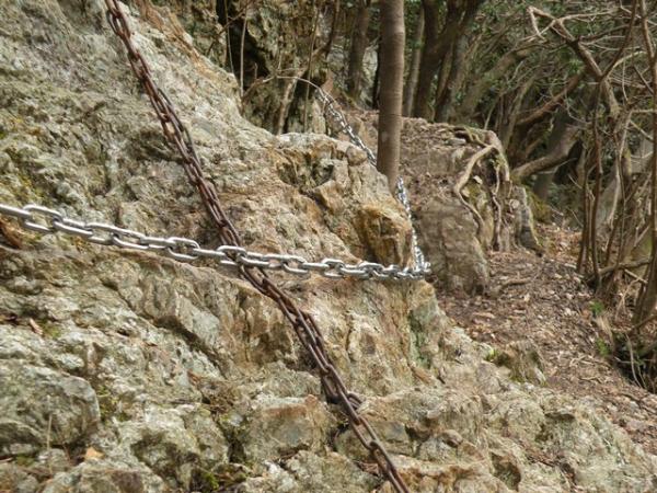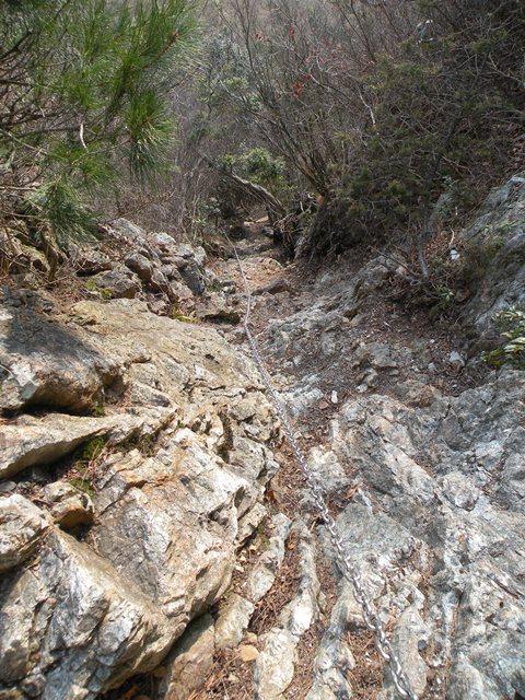 やがて石混じりの道に変化。さらに岩場になり、鎖場が数ヵ所。(7、8ヵ所ぐらいでしょうか?)