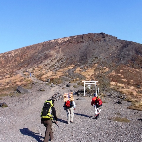 - 霧島古宮址(1:00)-御鉢(0:20)-馬の背(0:20)-高千穂峰-(1:30)霧島古宮址下山