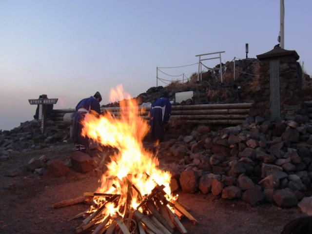 夕日と炎と空の色が、厳粛で神聖な雰囲気でした。無事に奉納が終わると下山です。