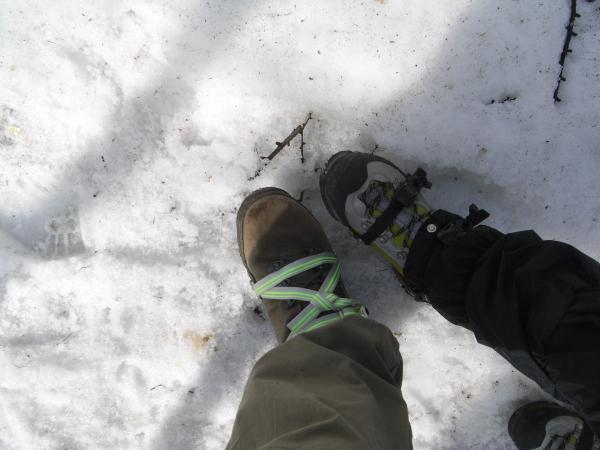 雪は締まり気味なのでアイゼンを付ければ歩きやすいです。