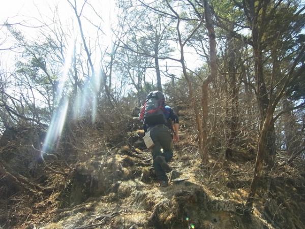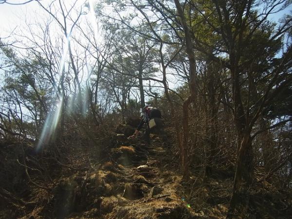 滝ヶ原峠からは藪っぽい急登を上がっていきます。