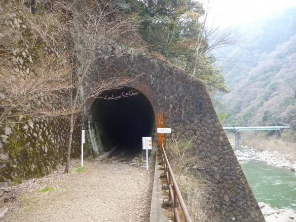 廃線道のトンネルは、必ず懐中電灯等が必携となります。