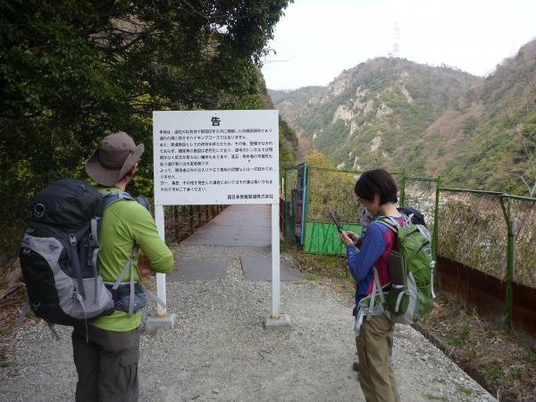 - 十万辻バス停<45>大峰山山頂<50>満月瀧<20>桜の園・武庫川河原<80>木ノ元