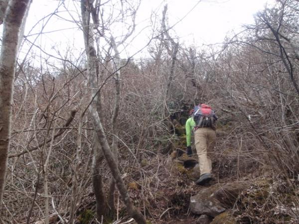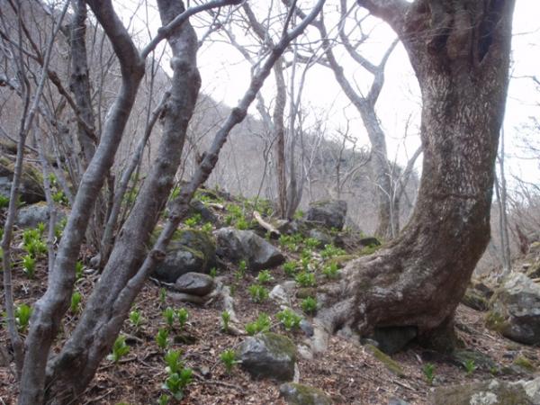 5月のしゃくなげの開花時期に合わせて新ルートが作られていました。「男池~上台うつし」までで、かなり急登です。初心者の方にはあまりおすすめできません。ゆっくり行きたい方へはかくし水方面からをおすすめしますが、こちらも風穴~黒岳への途中の急登は落石、スリップに注意して下さい。天気が良く、バイケイソウの新芽など少し花が咲いていて、春を感じることができる山登りでした。野草などは、今月下旬くらいからもっと楽しめると思います。山頂からの眺めは、最高です!!石楠花の時期も楽しみです。