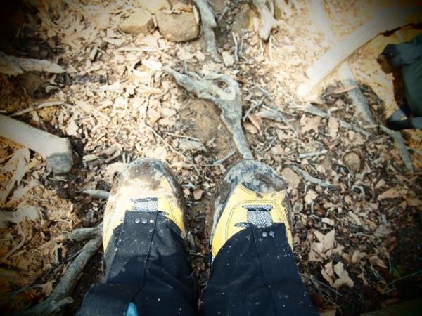 - 雪解け水が登山道を流れていて、道はグチュグチュしているので、